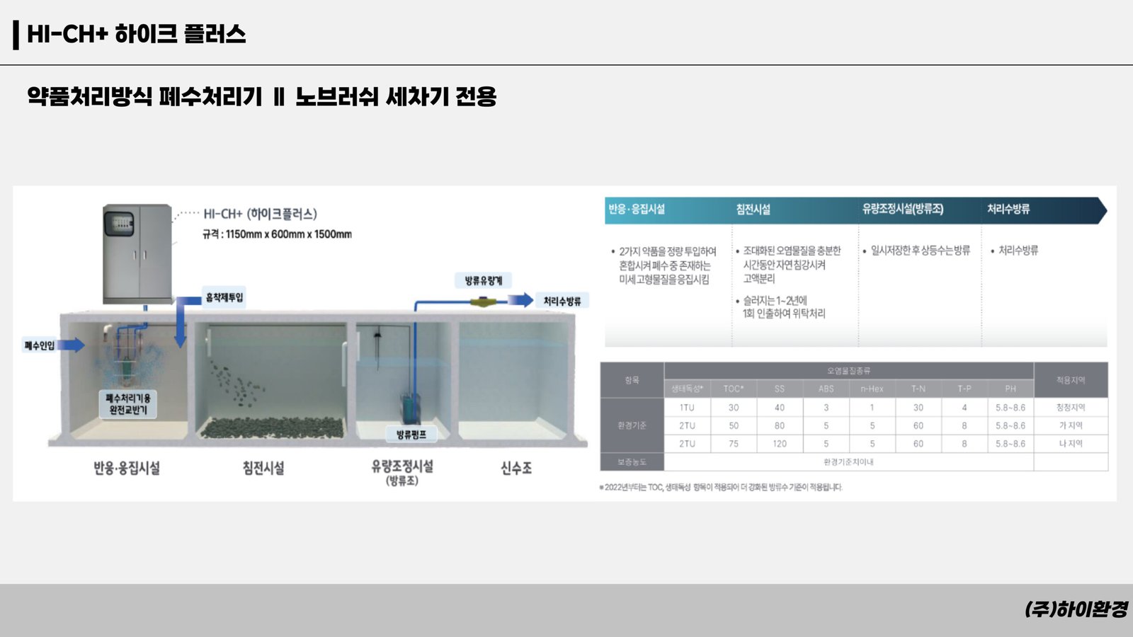 – 노브러쉬 세차기 전용 고농도 세제 폐수 처리에 특화
